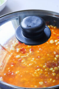 - Cover with a lid for two minutes then remove the lid and saute until the masala becomes cohesive looking and the oil rises over the tomato paste. Add a splash of water if it starts to stick/burn.