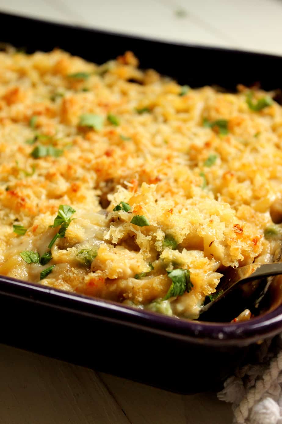 - Toss the melted butter, half the parmesan and panko and scatter overtop. Top with the remaining parmesan - this will give you that savory, crunchy, lattice effect