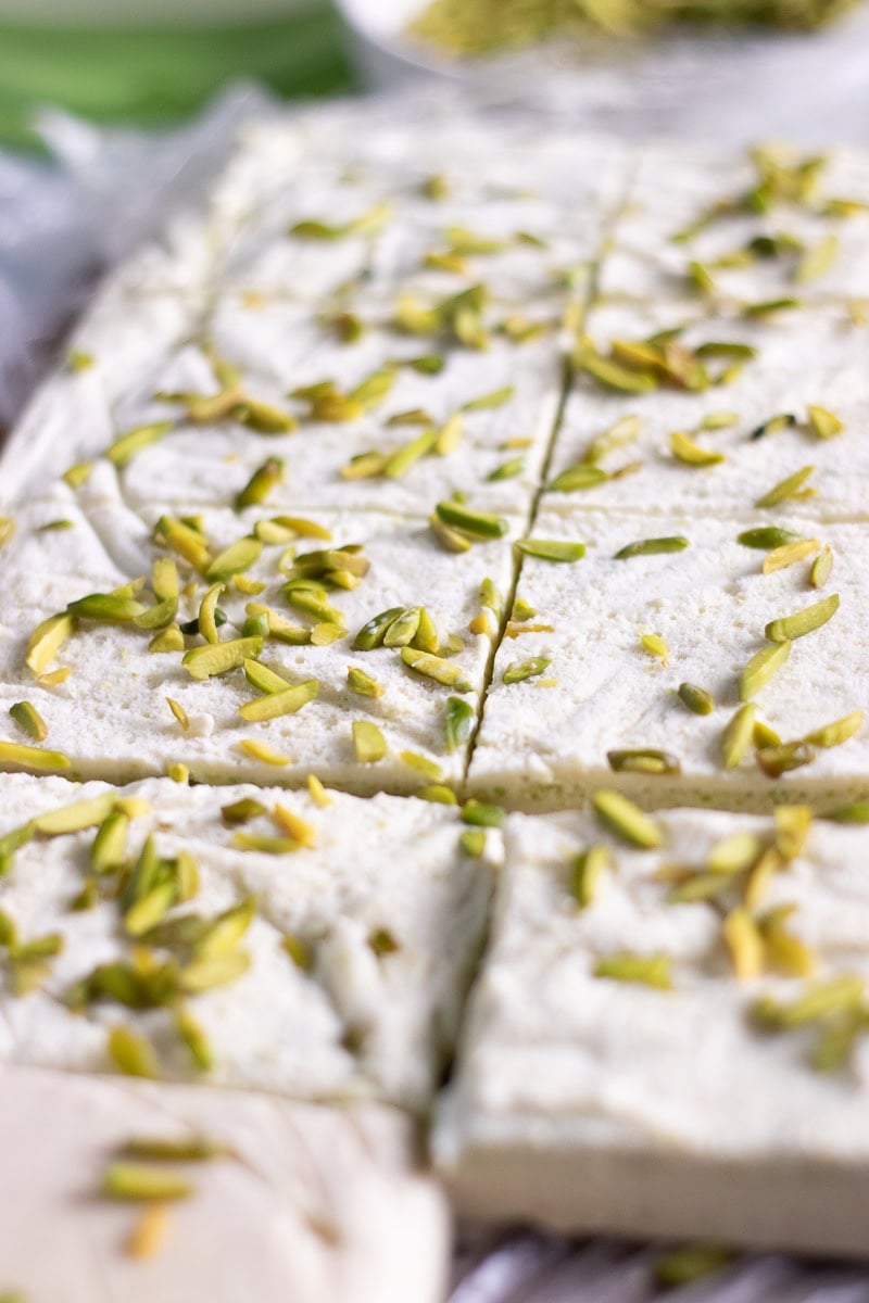 2.) All pistachios are not created equal. So remember we want them to be unsalted and blanched / slivered. Yes folk, for best results please step away from your big ol salted pistachio tub. At the very least eat them nuts before you toss them on to check if they are good. Your South Asian grocers will have the perfect pistachios.