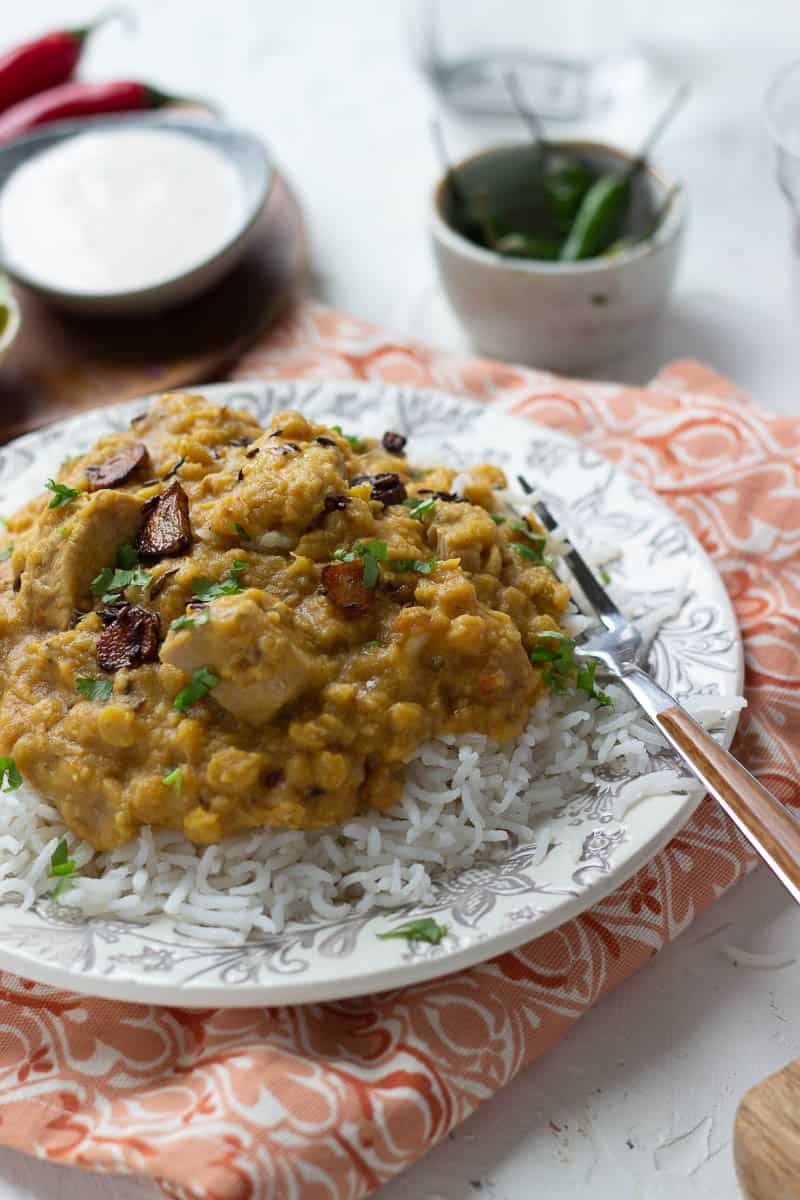 I am going to be straight up honest and say Chicken Dal Gosht or Dal Chicken was not something I grew up with. Dal gosht was made with beef. Or mutton. It straight up confused me when I had Dal Chicken for the first time. Just for a moment though because I am an equal opportunity eater and yummy is yummy.