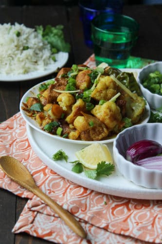 Whereas I love having Gobi Gosht with paratha on my indulgent days Gobi Chicken is best suited to some chapati or naan. They are perfect for sopping up the masala and are a great counterpoint to the lighter brighter flavours of Gobi Chicken.