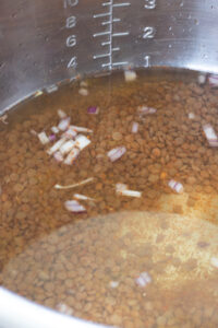 - Stove top: Boil the daal in about two cups of water with the diced onion and spices. The cumin and coriander powder add an earthiness, but if you don't have them handy don't worry about it.Instant Pot: Combine the daal, diced onion, spices, and 2.5 cups of water in your Instant Pot. Cook on high pressure for 15 minutes, natural release for 10.