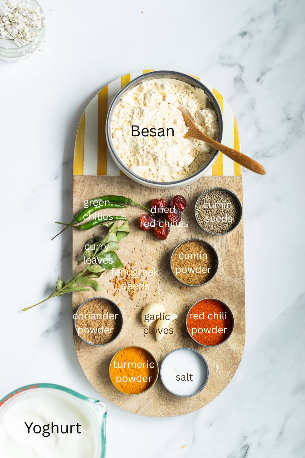 - Puree the besan and yogurt together - you can use a blender. I use an immersion blender because then I can measure the yogurt in, add the besan and blitz.