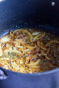 - Saute the onion in a little oil on medium heat until the edges are lightly golden
