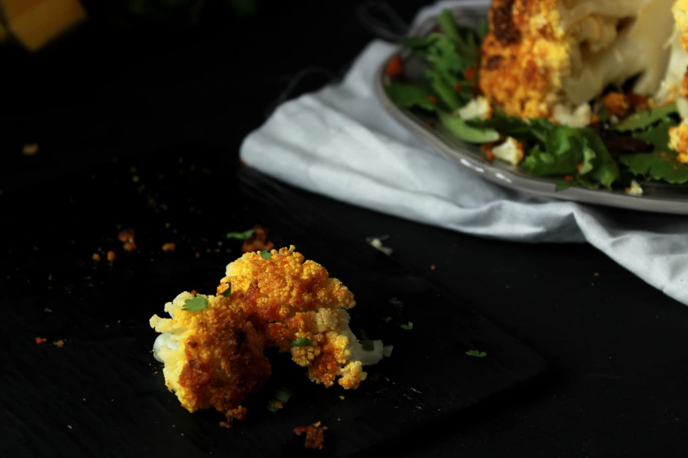 This is a fantastic recipe, I just have one question. I tried this and roasted the whole cauliflower for 45 mins. The florets seemed decently tender so I put the garlic mix on top and roasted for another 10 mins. When I went to eat it, it seemed a quite undercooked and not as soft as I usually eat cauliflower. Should I try to re-cook the cauliflower in the oven or cut it and cook it on a pan?