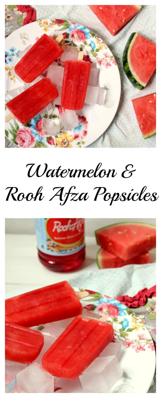 It is almost that time of the year folks. Ramzan/Ramadan is a month observed by Muslims world over by fasting from sunrise to sunset and focusing more on spiritual needs. It is a time to both be grateful for ones blessings and to assist those less fortunate. With Ramzan falling in the summer this year I thought it fitting to share with you these delightful Watermelon Rooh Afza popsicles. It is my spin on a deeply delicious and incredibly satisfying drink that my mother makes. Now I turn it into a refreshing and simple popsicle for my girls who share my love for watermelon and Rooh Afza. In these popsicles the Watermelon is the star and the Rooh Afza a back note. Should you want to up the Rooh Afza flavor feel free to just add more.