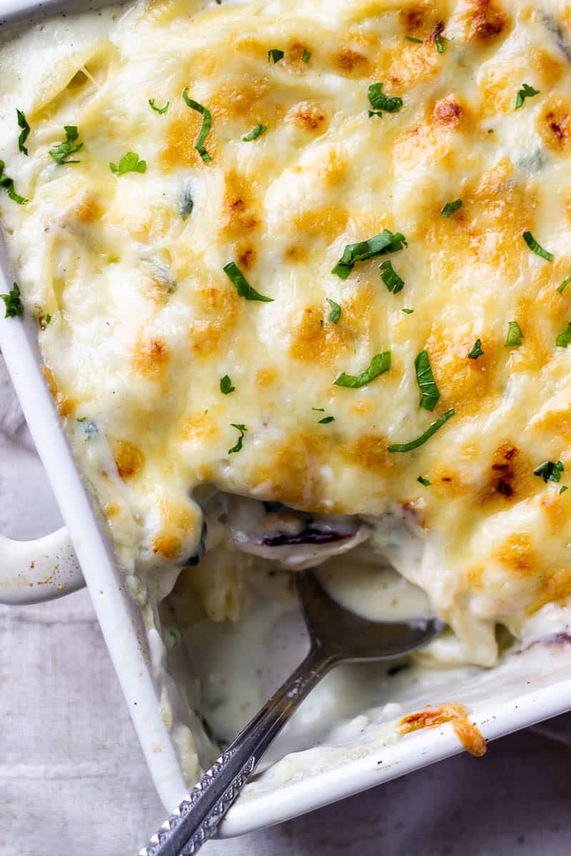 - Bake at 400F for 15-20 minutes to meld the flavors then broil for another 2-3 to get that lovely crispy cheese.